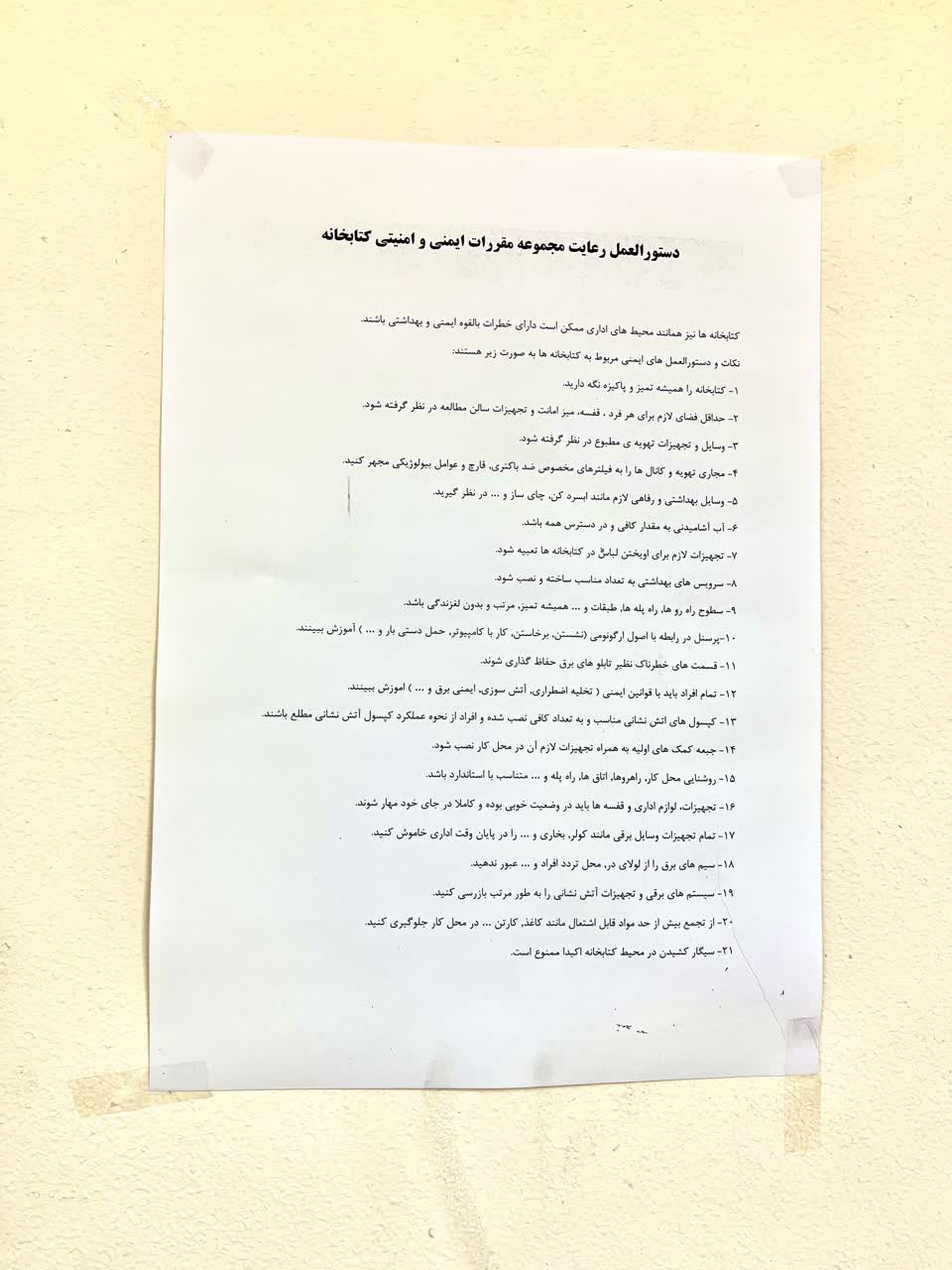 دستورالعمل ایمنی در کتابخانه ها