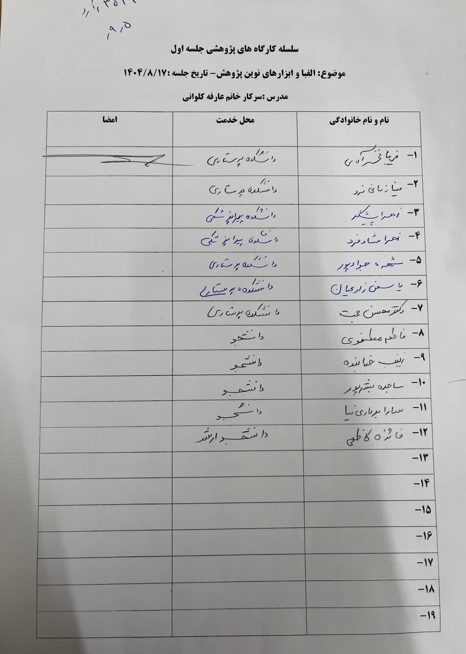 1404/09/08 | خانم عارفه کلوانی | لیست | فایل پاورپوینت |